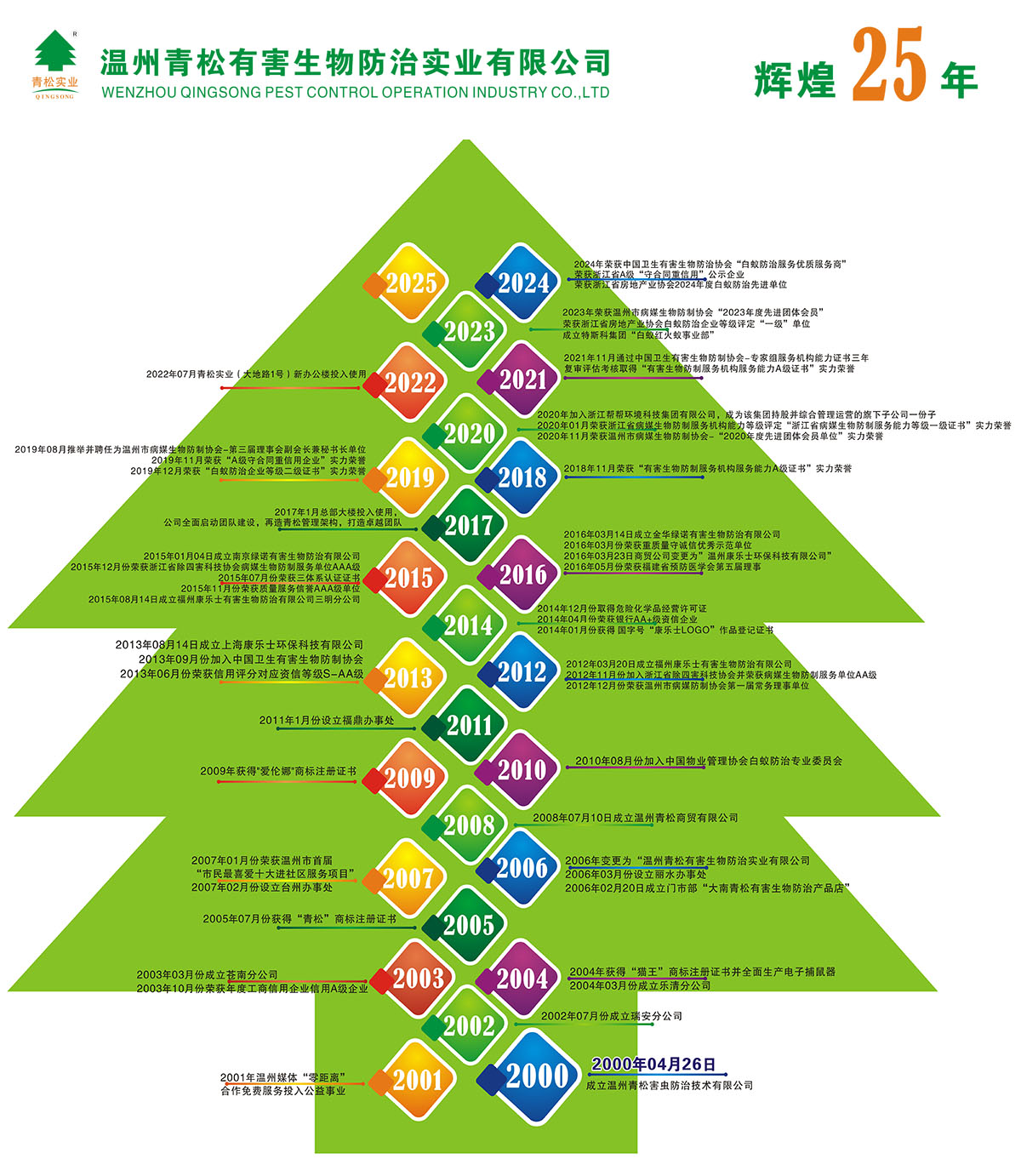 公司成立20年,立足于溫州地區(qū)及周邊城市,現(xiàn)公司在瑞安、蒼南、樂(lè)清、麗水、臺(tái)州、福鼎、福州、上海、南京、福州三明、金華等11處設(shè)分公司和辦事處,對(duì)各地區(qū)蟲(chóng)害防制、城市創(chuàng)建服務(wù)做出長(zhǎng)遠(yuǎn)的貢獻(xiàn)。
