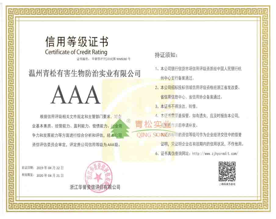 版權(quán)所有:溫州青松有害生物防治實(shí)業(yè)有限公司 地址:浙江省溫州市甌海區(qū)新橋街道高翔工業(yè)區(qū)大地路1號(hào)第4棟4-5層